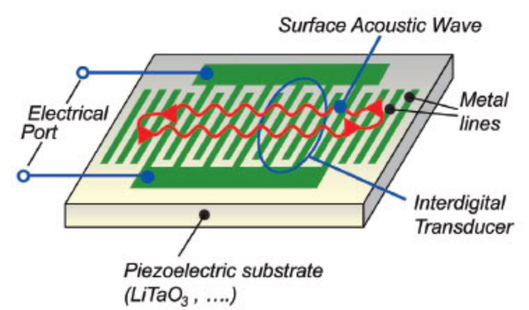 Concretely, the researchers have created a small chip with a delicate design of electrodes that generate the sound in a way that very precise operations are possible. To give more context here, sound waves can be created electronically on chips with a device called interdigital transducer. These are interlocked, comb-like metal electrodes on a piezoelectric material that convert electrical signals into mechanical oscillation resulting in acoustic waves and vice-versa, leveraging the piezoelectric effect: an applied alternating current voltage creates alternating electric fields between the fingers (electrodes), causing periodic expansion/contraction generating sound waves.